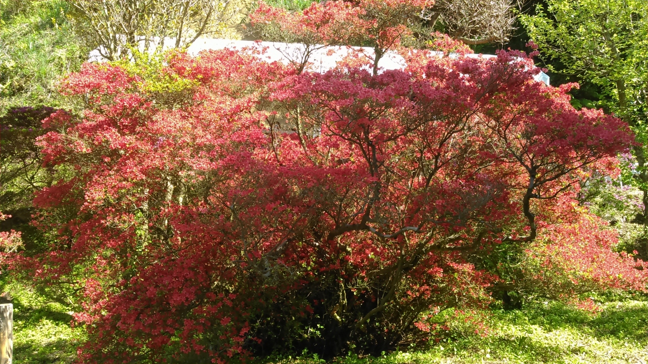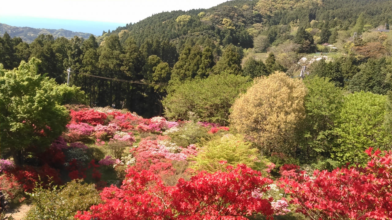日帰りバスツアーで訪問しました。個人のお宅というより、個人のお山一つが、つつじ園となっています。パンフレットは、小学生の僕ちゃんが配ってくれました。つつじは、一つ一つの花が小さい種類です。色は朱色、ピンク、白。黄色い物もありました。山の緑と、青い空との対比が美しかったです。御船山公園、箱根山の上ホテルのつつじも美しいですが、ここのが一番空いていて、自然な感じがします。