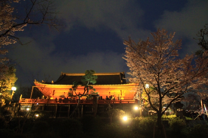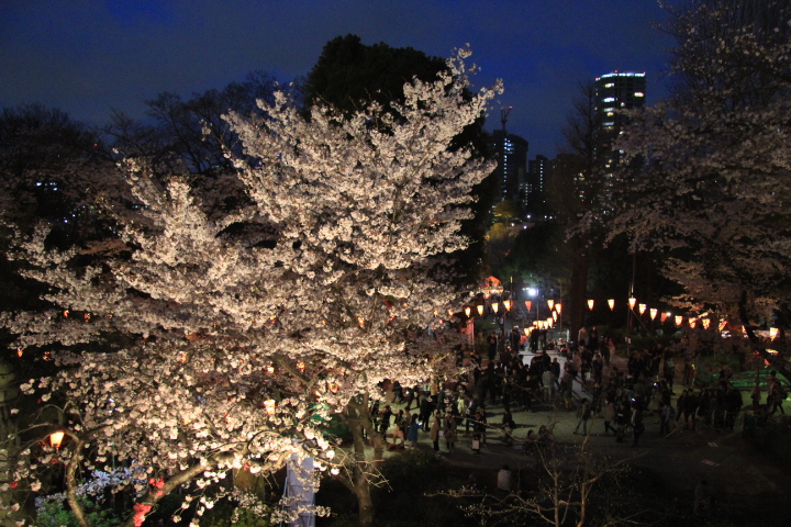 夜桜見物に行きましたが、舞台から見おろすと公園内の満開の桜が提灯のあかりに照らされてとても綺麗でした。また、下からライトアップされた清水観音堂を見上げると幻想的で美しかったです。但し、とても混み合っているのが難点です。