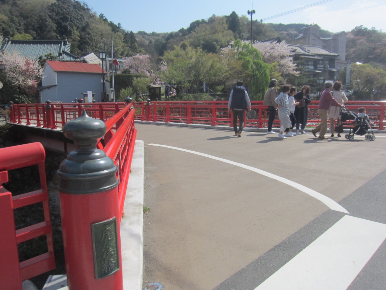 温泉街の5つの赤い橋