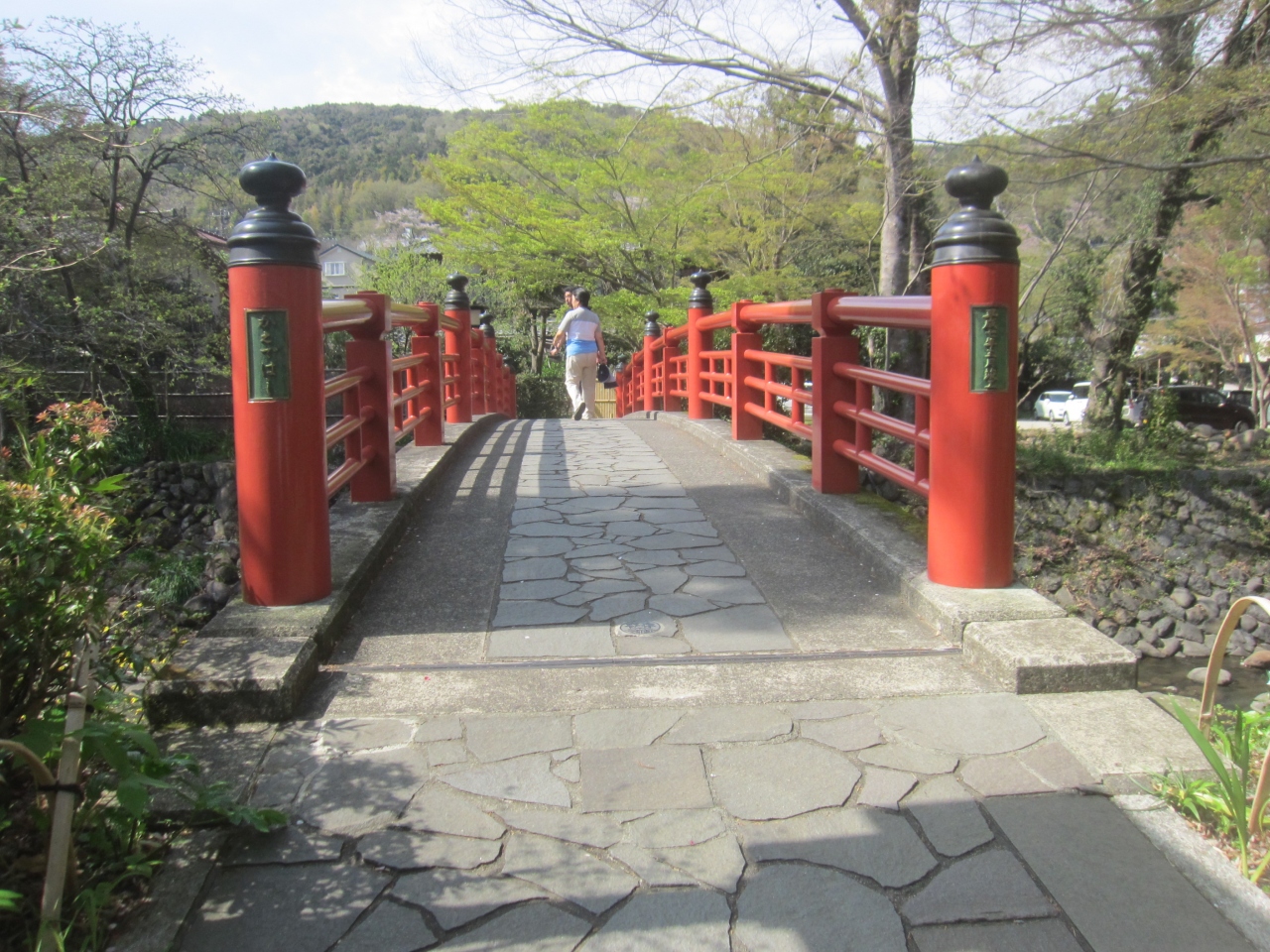 修善寺温泉街の桂川には5つの赤い橋(下流から渡月橋(みそめ橋)・虎渓橋(あこがれ橋)・桂橋(むすばれ橋)・楓橋(よりそい橋)・滝下橋(安らぎ橋))がかけられています。これらの橋に願いをかけながら渡ると恋が成就すると言われています。まぁ、観光用に作られた話ではないかとは思われますが、赤い橋は写真映えするので、恋の橋めぐりをしている人よりも記念撮影をしている人の方が多くいました。どれも朱塗りで美しい橋でした。