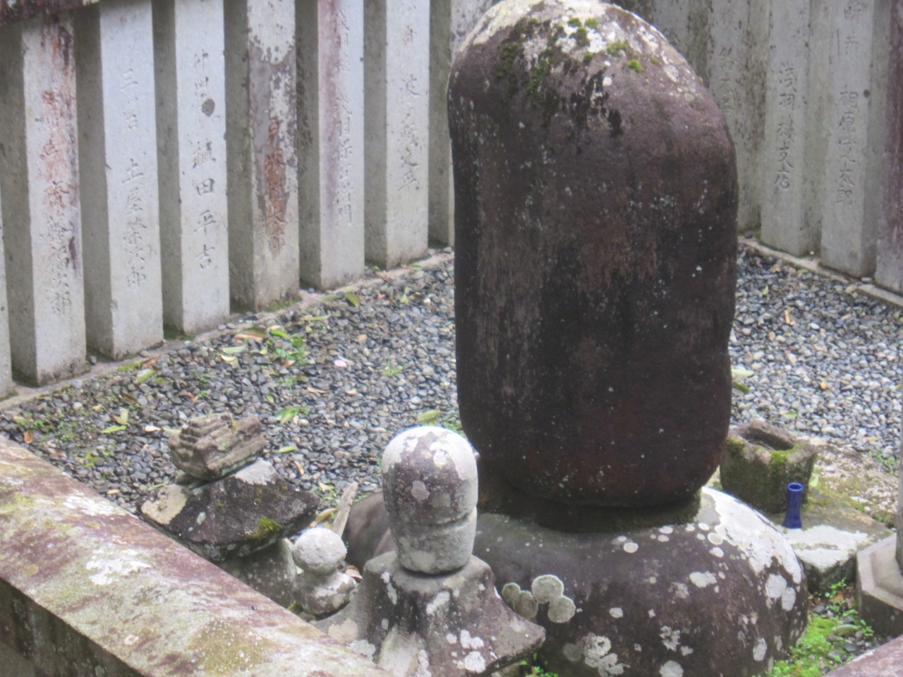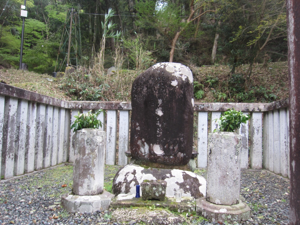 指月殿の脇の源氏公園にありました。源頼家は頼朝の子で、鎌倉幕府の2代目の将軍となった人です。最期は祖父・北条時政により修禅寺に幽閉されて入浴中に殺害されました。お墓は「征夷大将軍左源頼家尊霊」と書かれた石碑がありますが、実はこれは頼家の500回忌に1704年に建てられたもので、本当のお墓はその裏にある2つの小さな五輪石塔だということです。五輪石塔は前に石碑があるので正面からは見えませんが、お墓の横から岩屋地蔵へ向かう上り坂があるので、ここを少し上ると石碑の裏にある石塔を見ることができます。