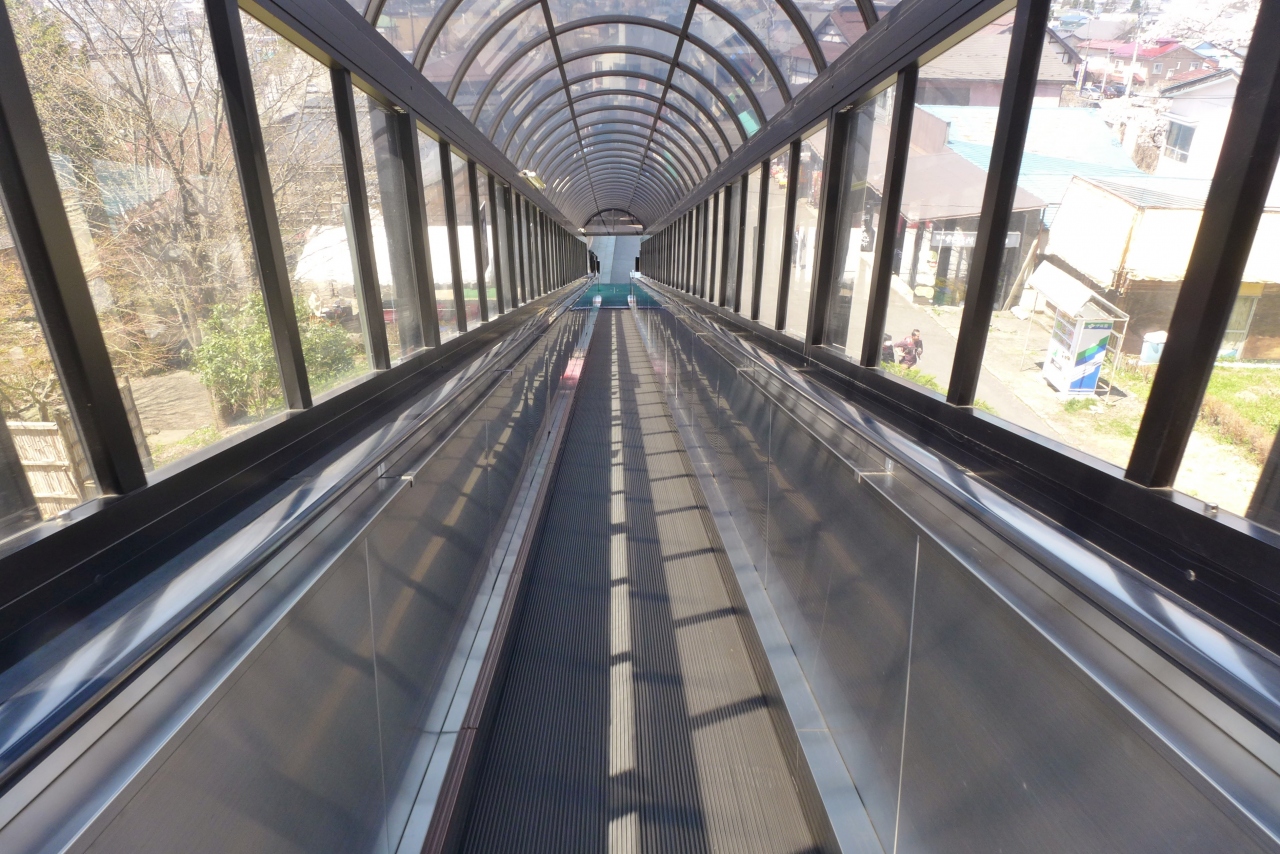 脇を見ると動く歩道が用意されているので殆どの人が利用するようですが、これに乗っても最後の石段は自分の脚で登る必要があります。