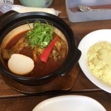 スープはコクがあまりなくサラッとタイプでライスはサフランライスでした。