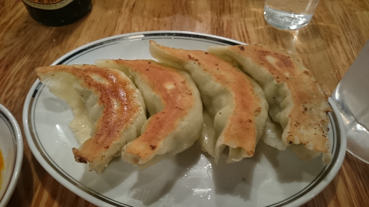 こちらの中華屋さん、ラーメンからご飯物それぞれ種類があって、どれを頼むかすごく悩みました。餃子は大きくて食べごたえ満点です。