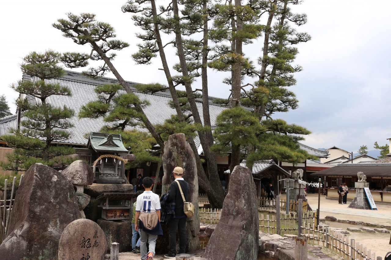 厳島神社出口の向かい側にあります。龍神様を祀っていて、龍神様のところにあった松が立派でした。昔は、厳島神社の建て替えの費用を集めていたそうです。厳島神社に比べると地味で、あまり観光客が来ていませんでした。