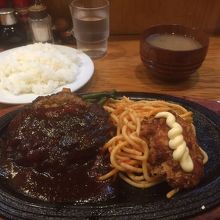 三軒茶屋にある「町の洋食屋さん」です。ランチタイムに行きましたが、ハンバーグが人気メニューとのことだったので食べてみました。ハンバーグ、コロッケ、ナポリタンにライスと味噌汁が付いたセットはボリュームがあり、お腹いっぱいになりました。ハンバーグは人気商品だけあって、肉汁たっぷりのジューシーで美味しかったです。