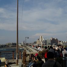 自動車用が「江の島大橋」で、歩行者用、自転車道が「江の島弁天橋」です。