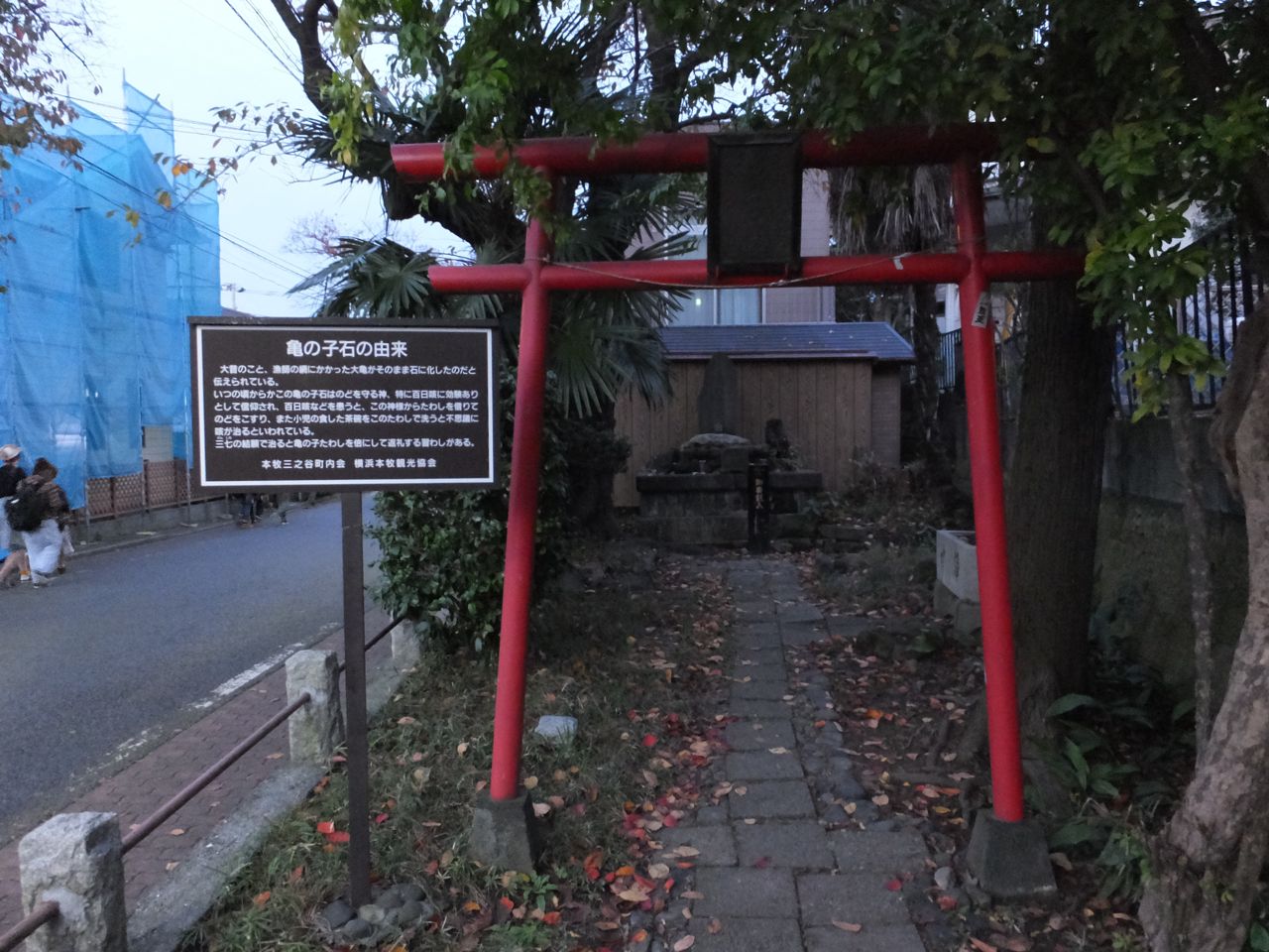 三渓園の入口近くの小さな神社の中にあります。中にあるというよりこの亀の子石そのものが神様なのかもしれません。
