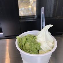 カップにソフトとずんだ餅が入ったミニパフェ(450円)を食べました。ソストやアイスはあっても餅付きはあまり見たことがないですね。ずんだ餅は2つ入っていて食べ応えあります。
