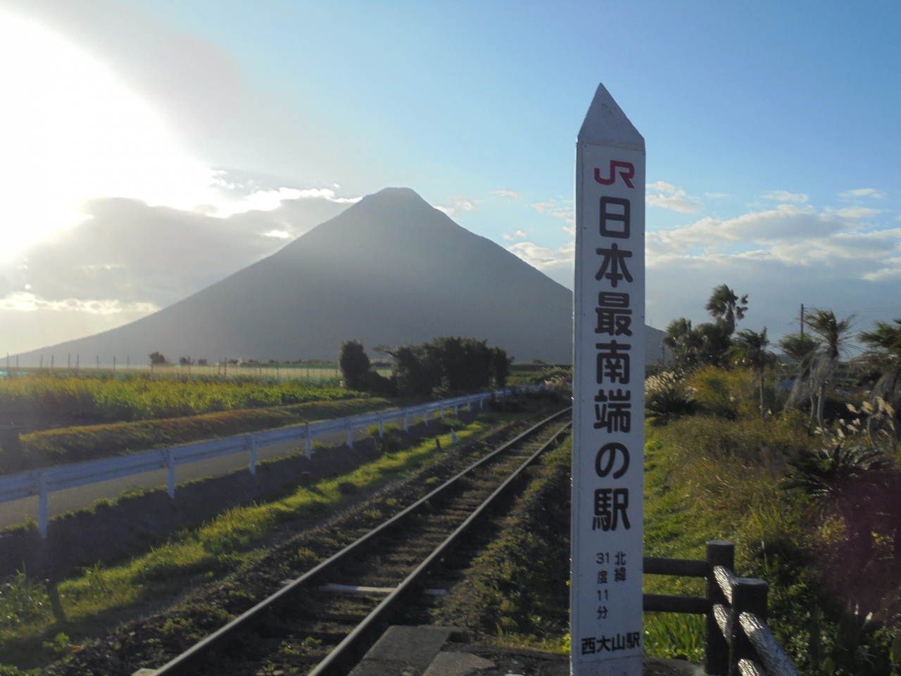 長崎鼻から海越しに見える開聞岳、西大山駅のホームから見る開聞岳、池田湖から西に見える夕暮れの開聞岳など随所で印象に残る景色を提供してくれました。