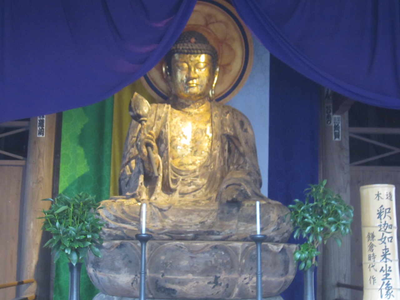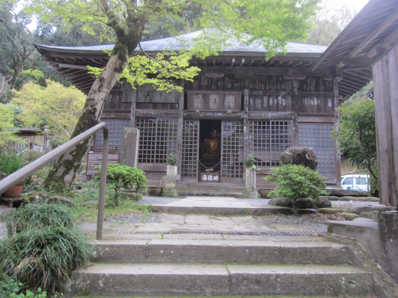 修善寺温泉街の南側のちょっと小高い場所に北条政子が息子である鎌倉幕府2代将軍源頼家の冥福を祈って建立したという指月殿があります。伊豆最古の木造建築らしく、ここも修善寺・竹林の小径・修善寺温泉街とともにミシュラングリーンガイドジャポンの二つ星の評価をいただいたスポットですが、山の中腹にあり、温泉街の賑わいとは違いあまり観光客も訪れてはいませんでした。建物の中には金色の釈迦如来像があり、建物のすぐ隣には頼家のお墓も建っています。