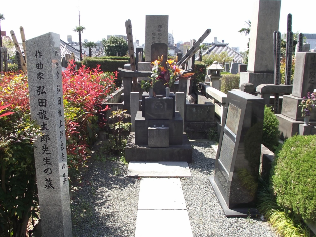 墓石とともに叱られての曲碑が建ててあります