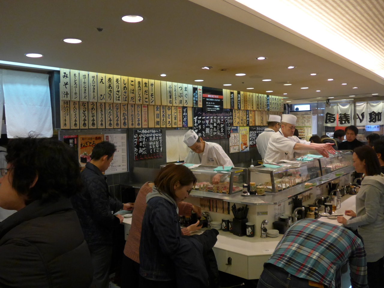 歩いて東京観光の最終は家族と別れる品川駅近辺で夕食をとる事になりましたが時間的に余裕がなくなり駅構内で行列が出来ていて是非、食べてみたいと思い並んでしまいました。店員さんの対応がとても早いので待っている時間も直ぐすぎて店内に通されました。
