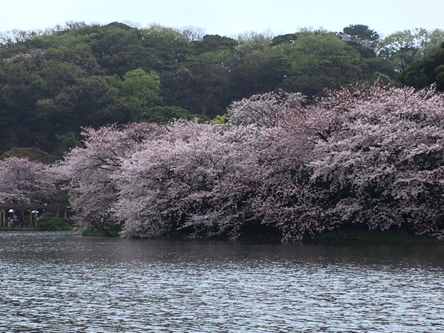 花見をするために訪れました。行った日は天気があまりよくありませんでしたが、花見の見物客で混み合っていました。