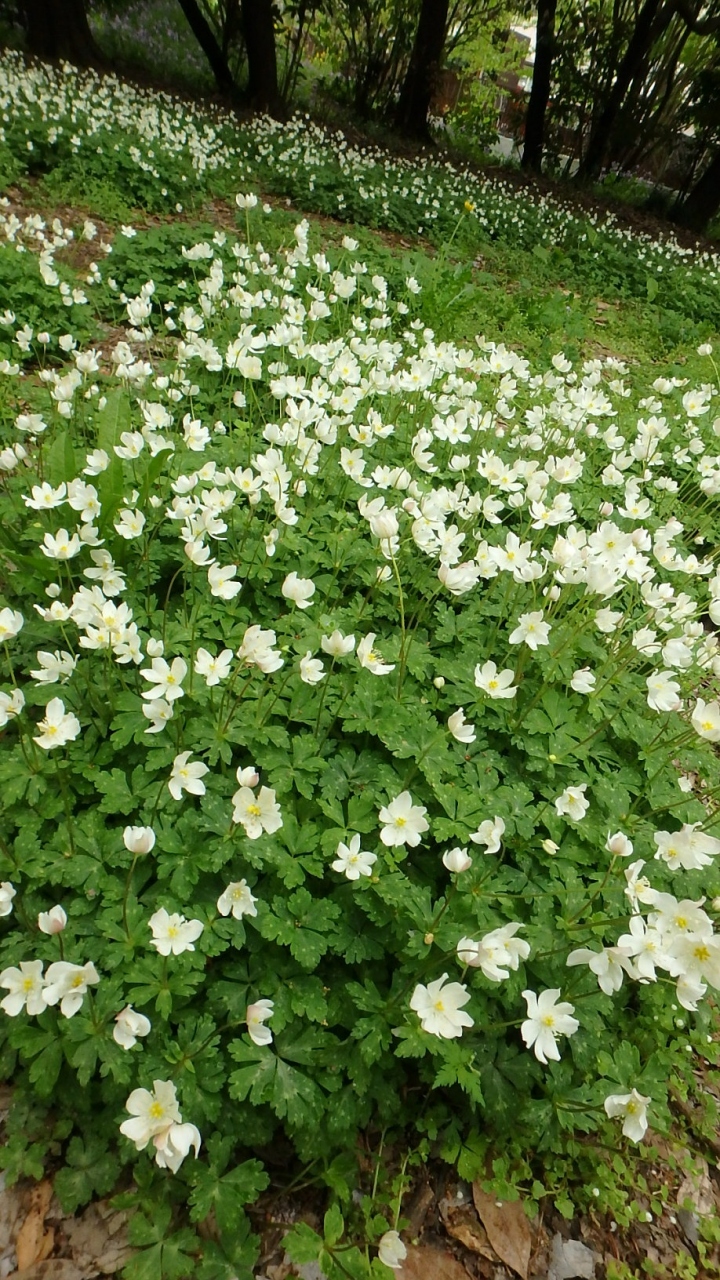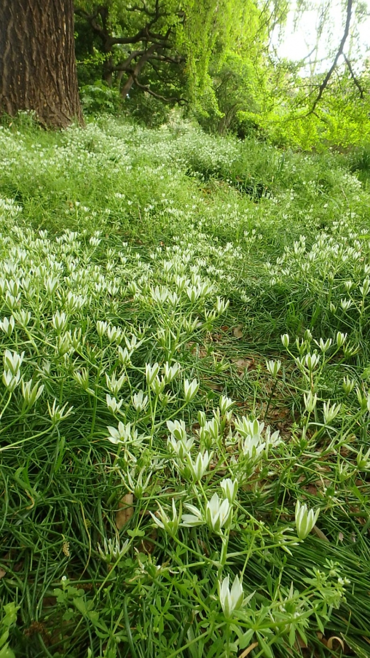 園内には、季節により木々の花が見られるほか、足元にも珍しい野草の花が咲いていました。私が訪れた時は、オオアマナ、ニリンソウ、サギゴケが見頃となっていました。