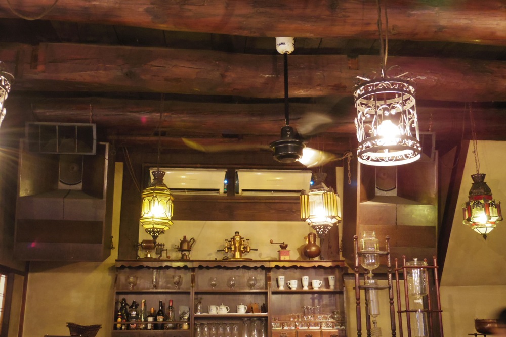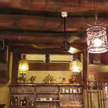 建物は黒い外壁がかなり印象的。1階の中はログハウスのような天井でこれもまたおもしろい雰囲気があります。