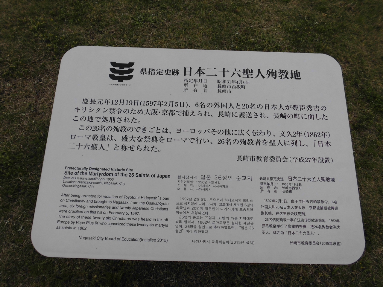 豊臣秀吉の時代にキリシタン禁止令により、宣教師6人と日本人信者20人が処刑された丘です。26人の中には子供もいたということです。そういう時代だったのだと思いますが何かじんとくる者があります。