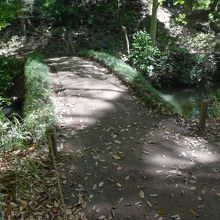 池の中には築山が2つあるが大きな方が「藤代峠」のある山。