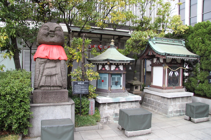 銀座三越の屋上・銀座テラスに行ったら片隅に出世地蔵尊が祀られていると案内板にありましたので参拝しました。なんでも震災と戦災で2度もがれきに埋もれたそうですが、その都度地元の方が掘り出したそうです。今は六角堂に安置されています。隣の石仏はなかなかユーモラスなのでそちらもご覧ください。