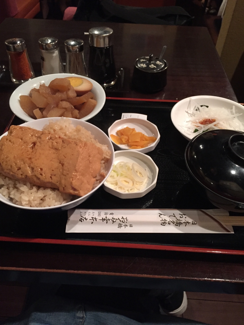 豆腐が1丁鎮座した御飯はインパクトがあり、味もシミシミでおいしかったです。