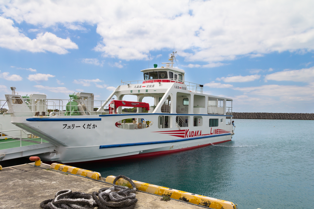 安座真港と久高島徳仁港を15~25分で結ぶ(高速)フェリーです。