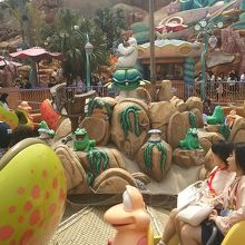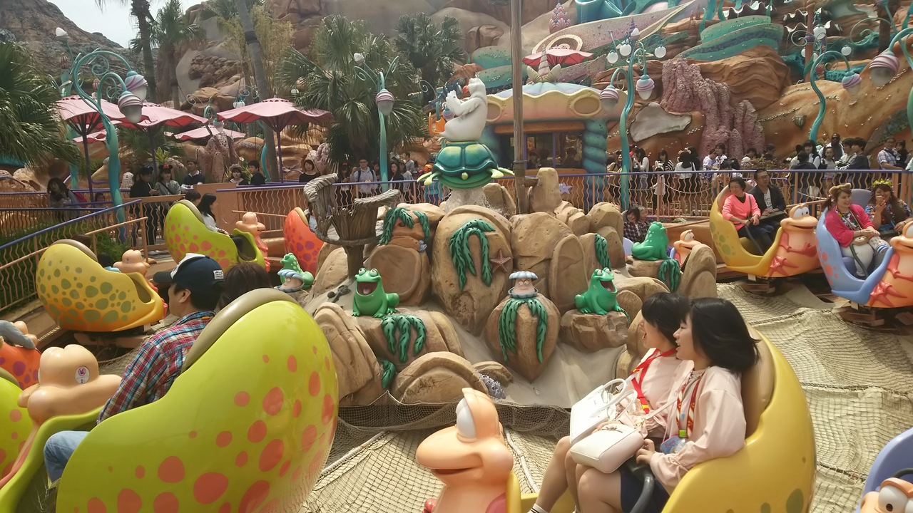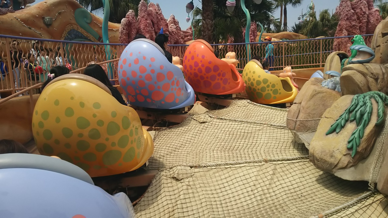 ディズニーシーのマーメイドラグーンにあります。見た目は大丈夫そうですが侮れません。上下運動と回転運動が勢いよく入って、食事直後の私は気持ちが悪くなりました。家族が異なるスクーターに乗るときは、スタッフが「こことここが向き合いますよ」と教えてくれ親切に感じました。