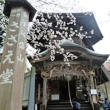 自然の桜と知恵のお堂のコントラスト