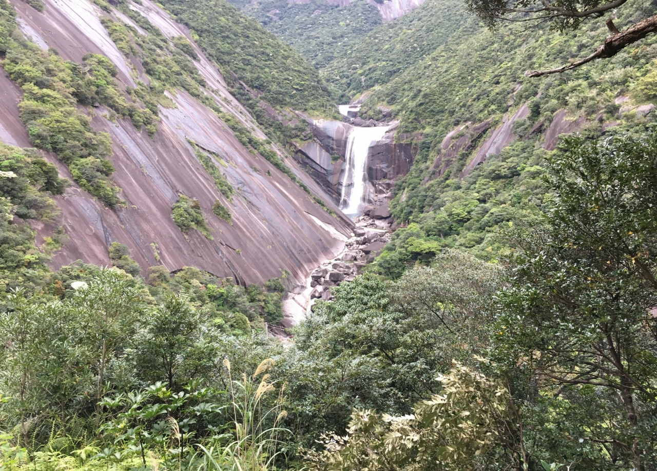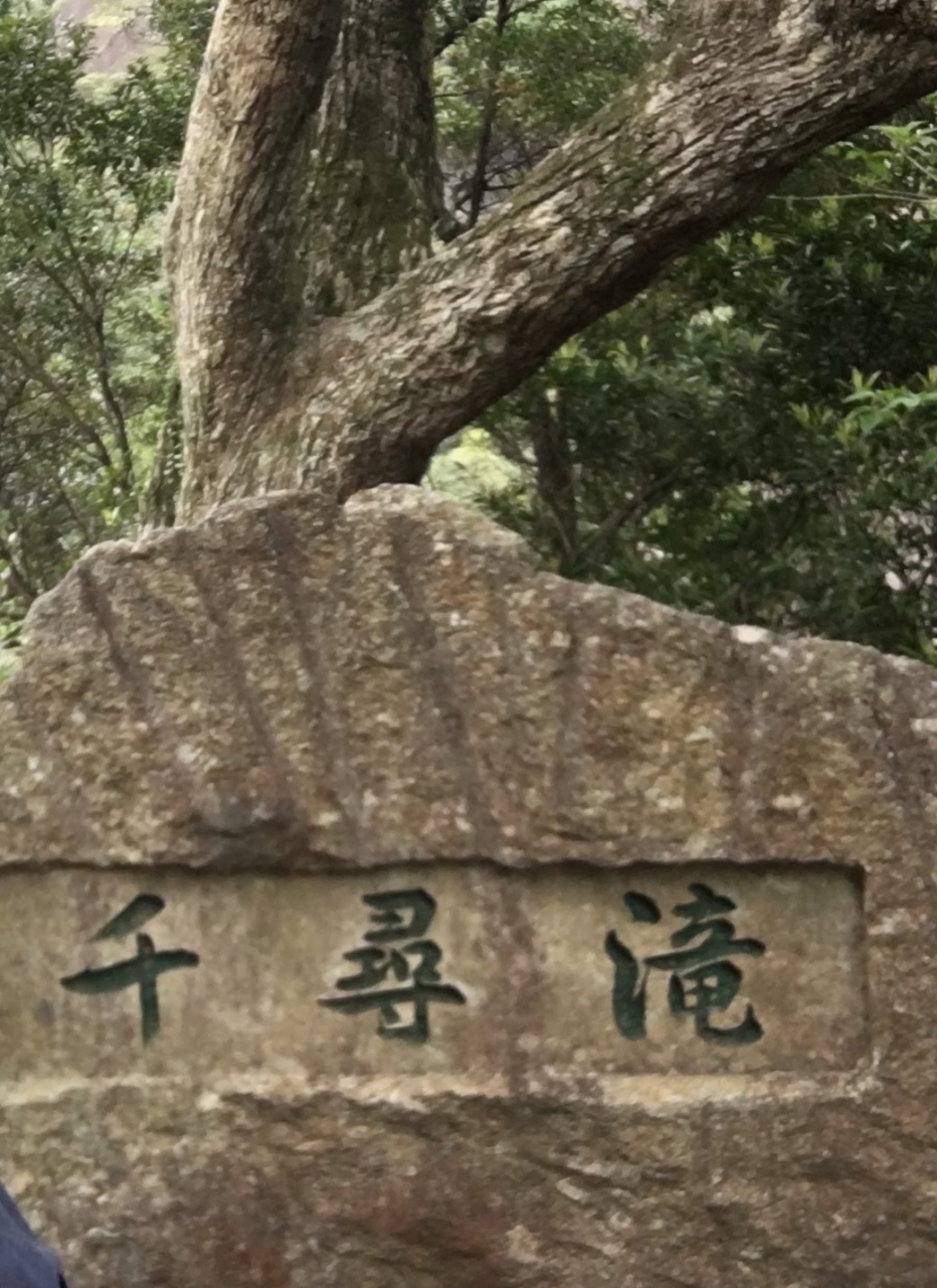 広い駐車場から100メートルほど歩くと落差の大きな滝が現れる。滝の水量も多く見応えがあるのですか、滝のすぐ左手のなめらかな岩盤の巨大さに驚いた。一枚板のような表面にはところどころ杉やその他の植物が生えているのも面白い。滝以上に山肌に興味がもたれる所だった。