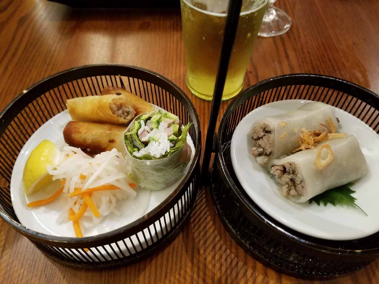 新宿に来ると、よく行くベトナム料理の店。ランチタイムにはランチセットがあり、揚げ春巻き生春、蒸し春巻き、紅白なます、ご飯か麺から好きなもの選べて1500円。ランチビールも300円とお得。ここのフォーが大好き。味がいい。