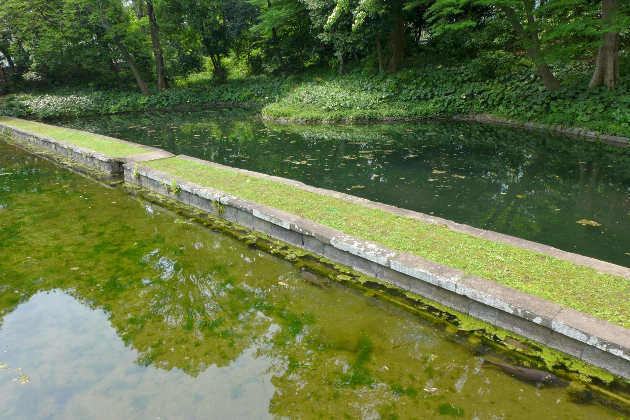 小石川後楽園の入り口を入って左手に進むと細い流れがあって渡月橋が架かっています。