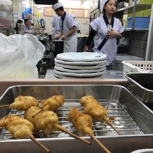 串カツタウンでもある新世界。ここで一番おいしいとウワサの八重勝。いつも行列なので断念していましたが、今回はランチ時間にスムーズに入店できたのではじめての八重勝訪問。メインの牛肉の串カツに野菜など、サクサクして評判通りの美味しさでした。