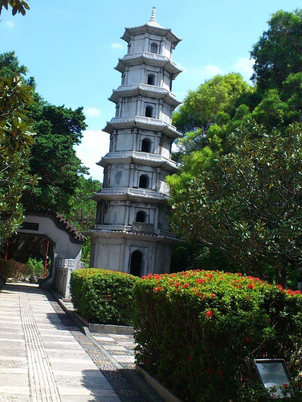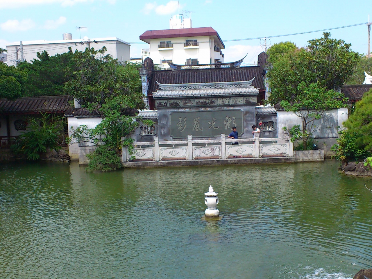 那覇の県庁から波の上ビーチに行く途中の左側にありました。那覇市の市政何年かの記念と中国・福建省福州市との姉妹提携都市を記念して造られた公園だそうです。設計もメインの資材も中国側が準備したそうなので、もろ中国風です。入場料が200円かかりますが、それ以上の価値があり、十分楽しむことができました。池や滝、中国式の塔や門など盛りだくさんです。