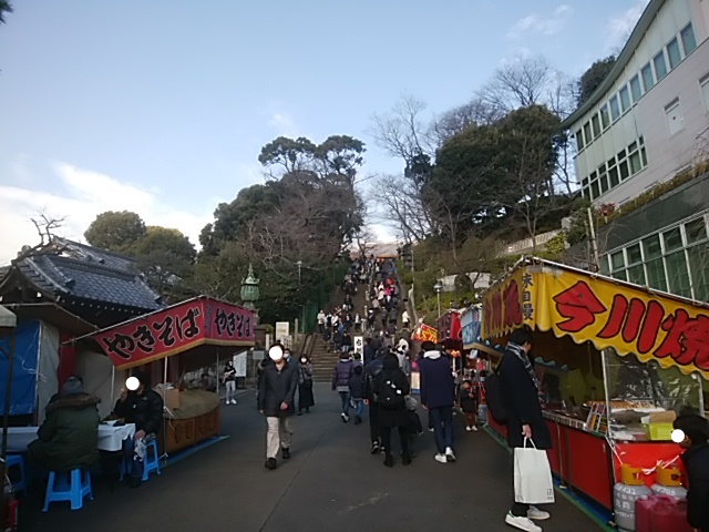 階段を上がると本堂前は広々としています。たまには違ったお寺に初詣もいいですね。出店がいっぱい出ているので、子供なども楽しめそうです。