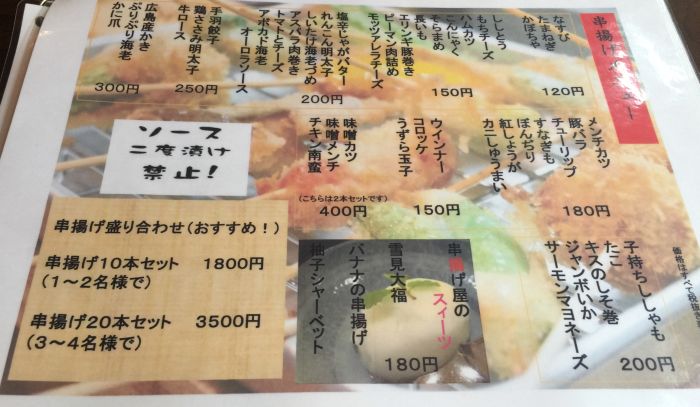 自分が好きなものを揚げてもらえる串揚げ専門店。居酒屋に行けば串揚げはあるけど、専門店は少ない。成田駅そばで目にしたので、一択で決めました。