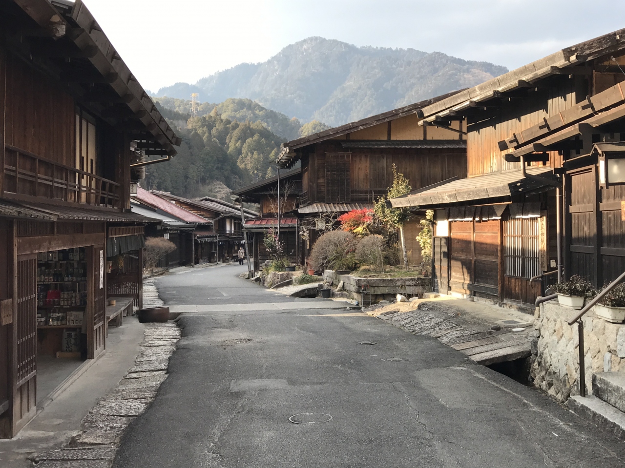 南木曽町の中心部から車で10分ほどの場所にあります。街道に入ると、そこはもう江戸時代の宿場そのまんま。道沿いには昔ながらの土産店や食事処が並び、ゆっくりと散策を楽しむことができます。ここまでしっかりと保存されているのに驚くとともに、地元の方の熱意と努力を感じました。