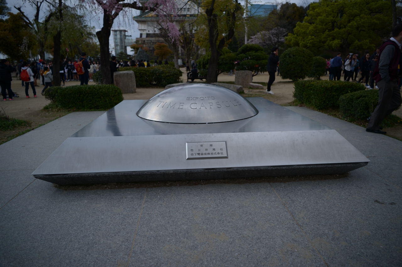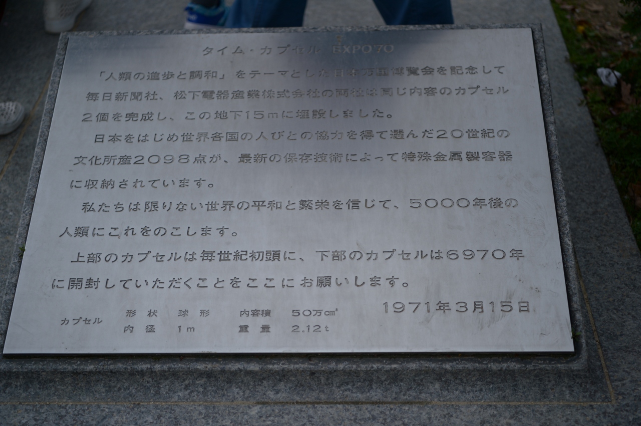 1970年の万博のタイムカプセルのことは記憶にありましたが、大阪城の本丸に埋められていたとは知りませんでした。見えているのは銘板たかだけなのでちょっと味気ないですが、エキスポ70から約50年経ったのかと思うと感慨深いものがあります。