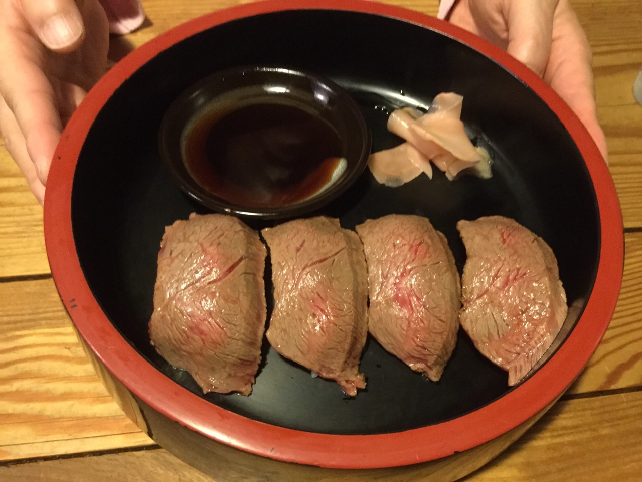 5時には閉まるそうです。でも、このお店は9時ごろまで営業していて助かりました。さらに、ここでは、飛騨牛の握りも食べられて、しかも美味しくって良かったです~♪