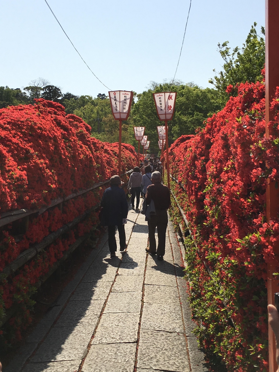 長岡天神付近で時間があまったので立ち寄ったのですが、なんとキリシマツツジが満開で嬉しい誤算となりました。敷地が広いので人が多くてもそれほど気にはなりませんが、それでもやはり水上橋の上だけはすごい人で。間近でみるツツジもきれいですが、少し遠目に見ると艶やかで素晴らしいと思いました。
