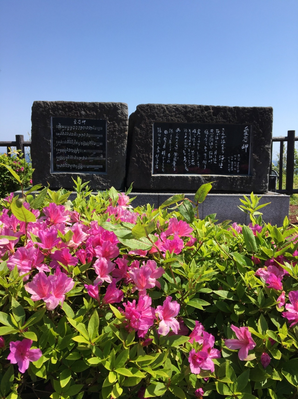 どんつく神社に訪れた際に、たまたまくることができた場所。つつじが碑の前に綺麗に咲いていて、海を見渡せる景色も素敵。下に伸びている階段を降りていくと、よいお散歩になりました。観光客も少なく、静かなよい場所です。