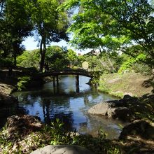 六義園の滝見茶屋近くにある小さな橋。