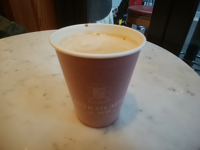 二子玉川のライズにあるカフェ。いつも混んでいます。この日は席が空いていたので、コーヒーを飲むことに…。「カフェラッテ」390円(税込)です。