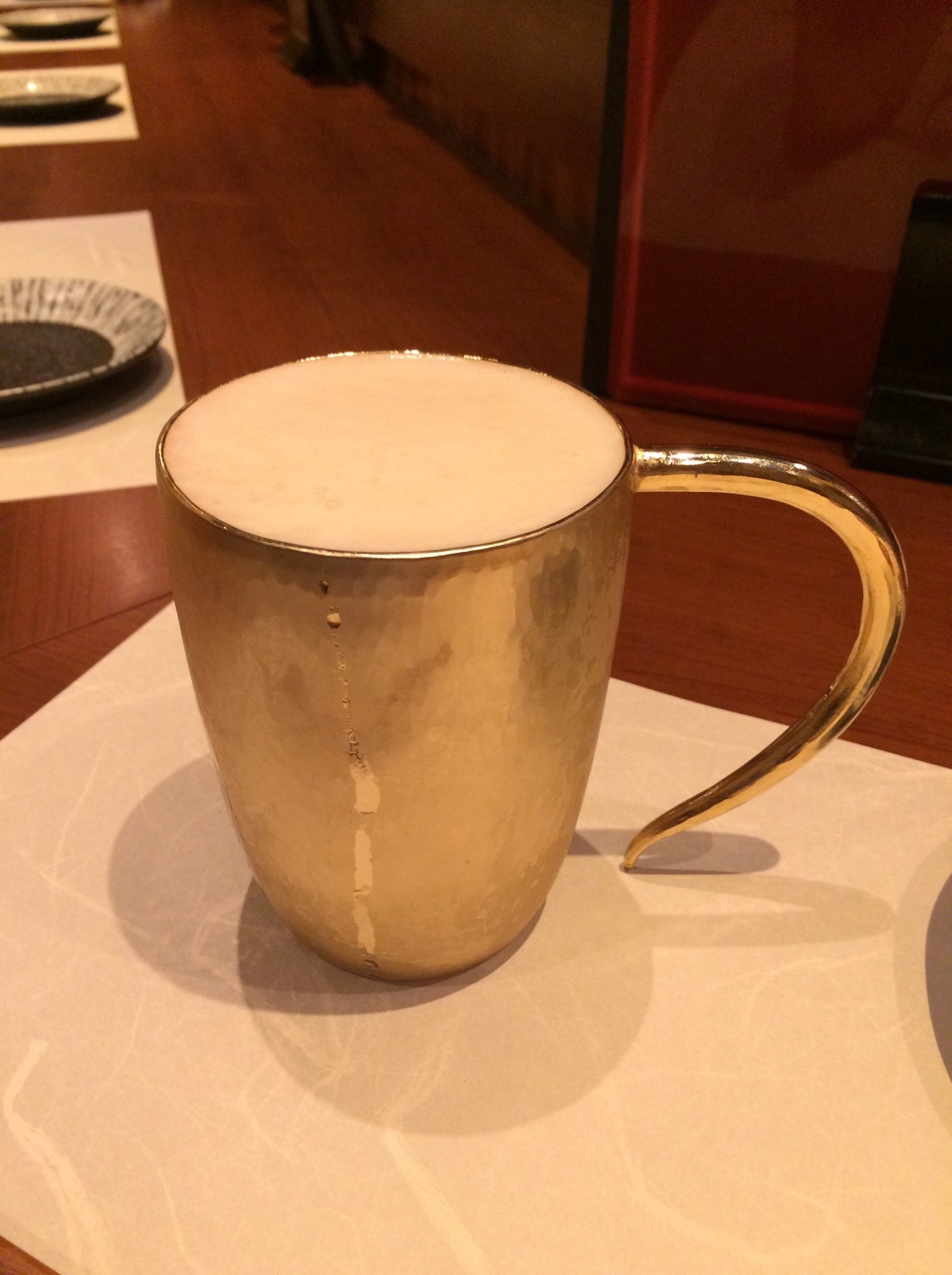生ビールは金の王様ジョッキー、鎌倉長谷の清雅堂という銅器の専門店で金を巻いて造られたジョッキ