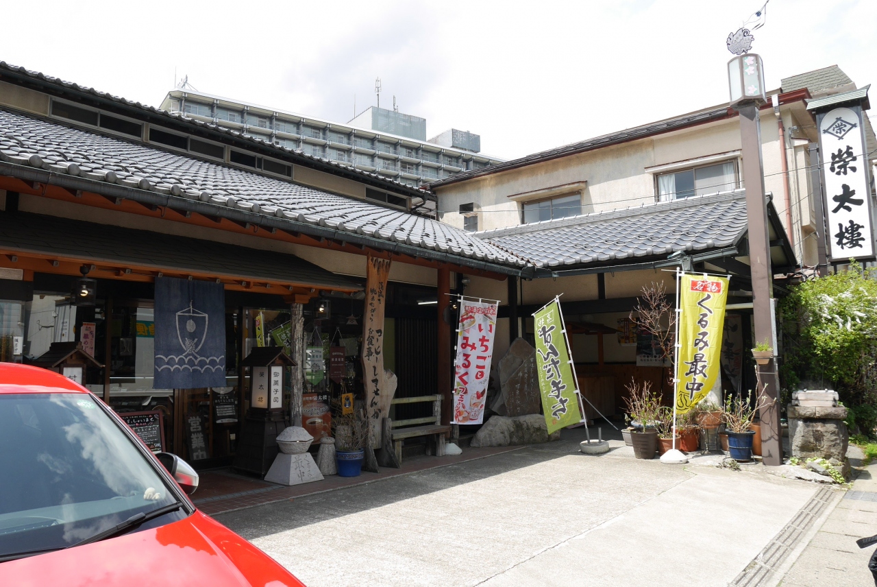 塩原温泉郷でおやつと言えば「とて焼」ですが、ここもそれが食べられるお店の一つ。とて焼はお店によって中身が全然違い、比較できないので、「どのお店が一番おいしい!」と言えないのが贅沢な悩み。栄太楼さんは和菓子屋さんですが、洋風チックなとて焼に仕上がっています。その名も「きまぐれなとて」。その日によって中身が違うのかな? フルーツが入っていてクレープのような感覚。こどもに人気が出そうです。