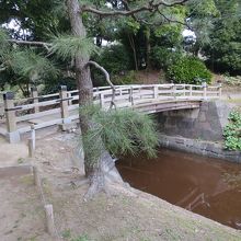 浜離宮恩賜庭園の潮入の池の一番奥に掛かる橋です。潮入の池に繋がる川に掛けられており浜離宮の中でも一番小さな橋だと思います。奥まっているため橋の両サイドは木々に覆われており落ち着いた雰囲気です。海水の赤い川の上に掛かる姿は日本庭園では一味違った雰囲気の橋です。