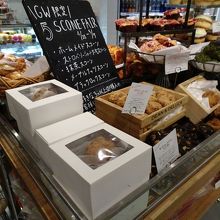もちろん、イートインコーナーもあるので、店内でトレイに自分で載せたパンをレジに持って行き、そこで飲み物も注文できて、店内で食することもできる。