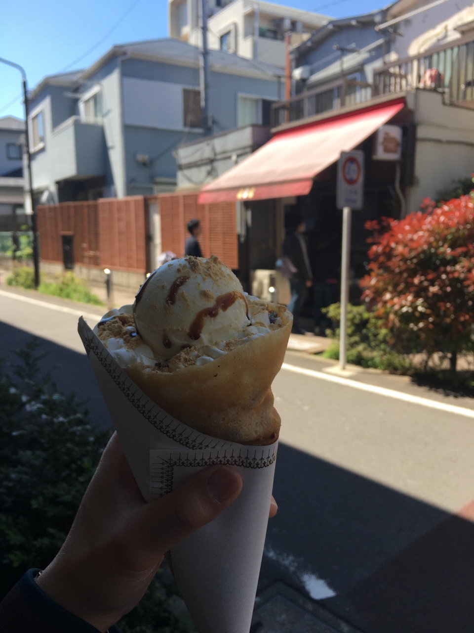 黒蜜きなこモチクレープをオーダーしましたが、そのボリュームに驚き。通常より少し高めのお値段設定でしたが、2人で食べてちょうど良い量でした。味もおいしかったです。