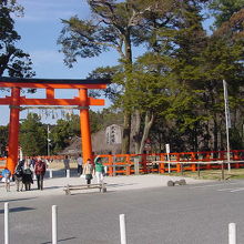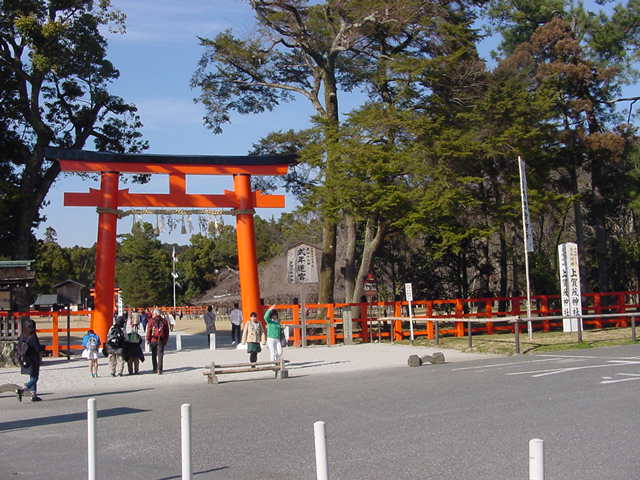 京都の観光地を回るのに、バス路線を把握するのは重要ですが、上賀茂神社は終点だから安心。ずいぶん北まで走ったと思ったらたどり着きます。鳥居をくぐってからの広い空間が好きです。神社の周囲には焼き餅のお店があって、これを味わうのも楽しみのひとつ。