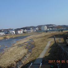 擬宝珠のついた上の橋と下の橋がかかっているのどかさ感じる川