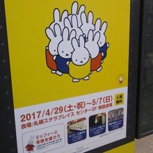 掲示によると2017年4月29日から2017年5月7日の間に開催され、ミッフィーの歩みの展示の他、写真撮影ができるミッフィーのおうち等3つの展示物があるそうです。