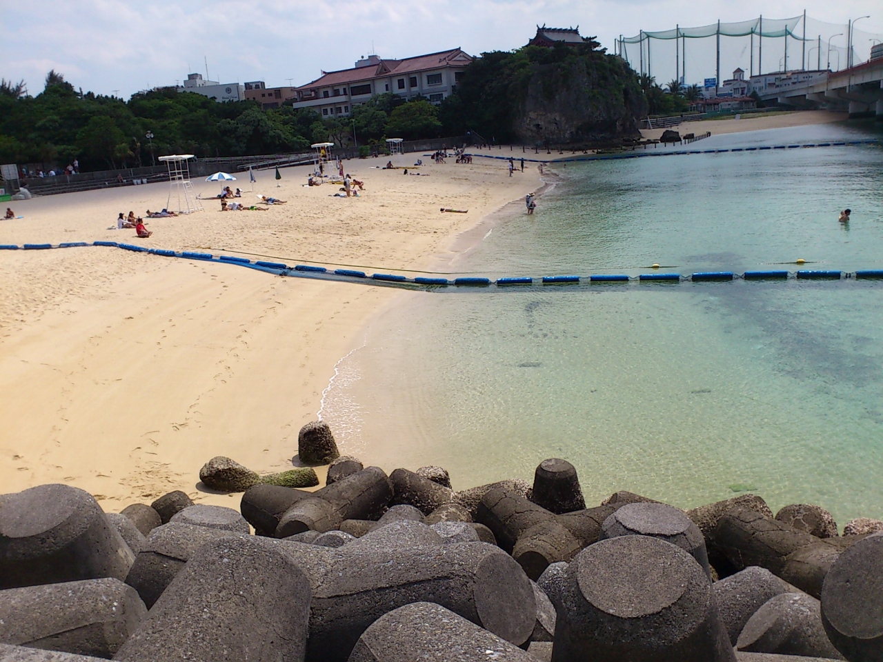 那覇の中心部の県庁から歩いて、20分ほどの場所にある人工ビーチです。途中には福州園や久米至聖廟などもあり、楽しみながら行くことができました。ビーチ自体はさすがに人工だけあって狭いですが、都心から歩いてすぐの場所なので仕方ないでしょう。5月の初旬ですが、多くの市民が水遊びをしていました。